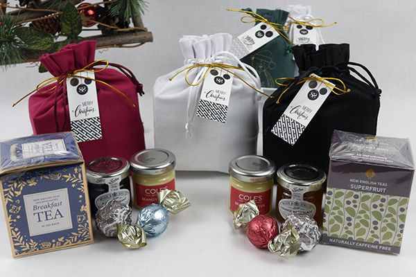 A little taste of Christmas Gift Bags! This season, for the ones that you appreciate the most, let the smallest gifts kindle the warmest gratitude. Our drawstring bags (in various sizes) contain a selection of stocking filler sized mini tea tins & festive cartons, chocolate truffles and more. These make luxury stocking fillers for everyone.